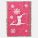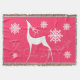 Pink All is Calm All is Bright holiday throw blanket, features a solid pink background, white text that reads All is Calm All is Bright, and a silhouette white deer. This pretty holiday throw is a great gift for yourself or someone you love and will become part of your Christmas tradition!