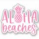 Get ready for summer with this cute beach inspired sticker that's perfect for anyone who loves island style! Cute design features the quote "aloha beaches" with a tropical pineapple fruit illustration standing in for the letter O.