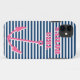 Pink anchor iPhone 5 case | Sailor girl. Navy blue and pink anchors aweigh phone cover. Cute nautical gift idea for sailor's wife and sailing enthusiasts. Maritime theme. Personalizable with your name initial letters.