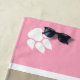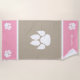 Fun design for anyone who likes dogs and animals featuring Destei's white dog paw print shape on a pink and beige colour background. There is also a personalizable text area for a name that could be used for your own name or for your pet's name, for example. The middle is beige while the top and bottom have a light pink background colour. Each corner has a white dog paw print while the middle has one large white dog paw shape on it. This colour combination of beige, white and pink makes for a beautiful design for anyone looking for a pet theme product with a sophisticated and girly touch.
