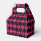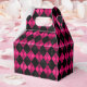 Add this bold pink and black argyle print party favour box to your celebration. Make a statement at your bridal shower or birthday party or even a Halloween party. A bold choice for teenagers and adults alike who want something more unique for their celebration.