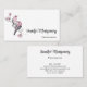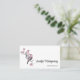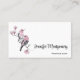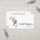 Business cards with a watercolor painting. 2 pink and black birds sitting on a tree branch with pink blossoms.