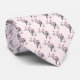 Patterned tie with a watercolor painting. 2 pink and black birds sitting on a tree branch with pink blossoms.