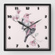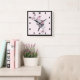 Pink and Black Birds on a Tree Branch Square Wall Clock