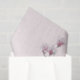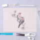 Tissue paper with a watercolor painting. 2 pink and black birds sitting on a tree branch with pink blossoms.