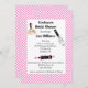Help a beautiful bride to be stock her kitchen with a cookware bridal shower! This invitation features a pink and white checked border with cute pink, black, and white cooking utensils in the centre. All text is customizable.