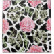 A gorgeous black and white giraffe print with an ethereal pink rose floral pattern.