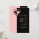 This classy wedding invitation features light pink and black colours with a whimsical heart image giving it a romantic touch for the special occasion. Great for weddings utilizing a classic pink and black theme and colours. Also able to be used for bridal showers and wedding showers by customizing the text to say just what you need. Look for matching RSVP's in my shop!
