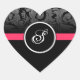 Pink and Black Monogram Heart Damask Stickers