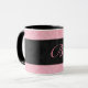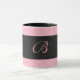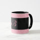 Your monogram in pink sits on a black bar with a lovely and feminine pink damask printed background.