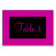Pink with black rectangle in centre of the design with room for a table number. You can customize the background and font colour, as well as the font style and size.