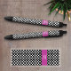 Pink and Black Polka Dot Pattern with Monogram Ink Pen