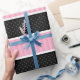 Pink and Black Polka Dot Stripes Pattern Wrapping Paper