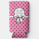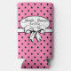 Pink and Black Polka Dot White Bow Personalized Seltzer Can Cooler
