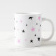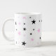 Elegant Pink and Black Star patterned jumbo coffee mug, fully customizable with your text or photo, create a truly unique coffee mug for your next coffee party.