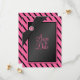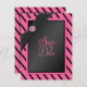 This pink and black striped Save the Date card has a PRINTED black ribbon and a PRINTED pink gemstone and diamond brooch on it that matches the wedding invitation shown below. If there are any other matching items you require, please email your request to niteowlstudio@gmail.com.