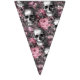 This haunting party bunting features a victorian gothic damask, stripes, diamond, skull and flower designs. This bunting banner is perfect for a Halloween or October wedding event. Colours include pink, black, white and grey.