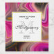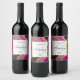 Wine making labels with a groovy looking abstract design. Pink and black colours mix and mingle together in a swirling motion. Sprinkles of faux gold glitter in between the layers. A white square frame with a faux gold foil border, layered over top with your personalized text inside.