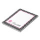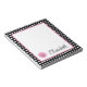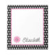 This fun notepad features classic black and white polka dots with a cute pink and black daisy.  Personalize with your choice of name or special text.