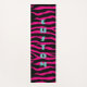 Pink and black zebra animal print thick big custom Yoga Mat. Trendy modern yoga mats with personalized name, quote or monogram. Cool Birthday gift idea for yoga lessons teacher, personal trainer, coach, fitness instructor, friends, family, mom etc. Quality gym equipment for yoga class, sit ups, exercises, physical therapy and more. Black or custom colour background with neon pink stripes.