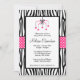 Pink and Black Zebra Heart Mobile Baby Shower Invitation