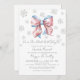 He or She, What Will Baby Be? Join the parents to find out the gender of their baby, boy or girl! This winter-themed gender reveal invitation features a delicate baby pink and blue watercolor bow, with soft watercolor snowflakes gently falling from the top and surrounding the bow for a seasonal touch. The simple and elegant design includes grey text in a mix of serif font and script typography, perfect for celebrating the parents-to-be in cozy winter style. With soft hints of pink and blue, this invite sets the tone for the big reveal. You can customize the font colours and change the background colour on the front to suit your theme. The back remains clean and minimal, highlighting the quiet, wintry elegance of the design. Simple Elegant Script Scallop Edge Watercolor Pink and Blue Bow Winter Gender Reveal Party Invitation. Available as a printed card or downloadable digital file to send by email or print locally!