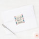Pink and Blue Flower Frame Fancy Wedding Square Sticker