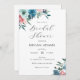Bridal Shower invitation featuring watercolor pink and navy blue flowers and greenery. Customize with your event details to celebrate the bride to be.