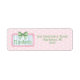 These cute return address labels feature a pink frame with blue and white stripes and topped with a preppy green and white gingham plaid bow on a background of pink and white polka dots. Personalize with your choice of name and address or special text.