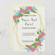 Pretty Pink and Blue Floral Garden Wedding Invitation is a beautiful wedding invitation featuring golden geometric shapes covered in garden flowers.