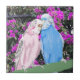 Pink and Blue Kissing Budgies and Bougainvillea Tile
