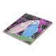 This beautiful colourful decorative tile features two lovely Budgies, one pink, one blue, against a back drop of pinky mauve Bougainvillea flowers.