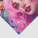 Indulge your sweet tooth with this charming design! A cheerful young woman smiles as she sits amidst a colourful array of creamy macarons. Her hair is dyed a vibrant shade of pink fading into sky blue, matching the pastel hues of the treats surrounding her. Piles of the petite French cookies can be seen in delicate shades of rose, mint, lemon and more. Bring a playful pop of colour and whimsy to your space with this eye-catching paper, perfect for crafting or home decor. Whether using as scrapbook paper, notebook covers, or wall art, it adds a fun feminine flair.