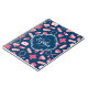 Nurse themed pattern design in pink, white, and navy blue, with a blue and white quatrefoil label featuring a monogram initial letter / name template. A cute, feminine design that is perfect for celebrating a special RN during nurses week.