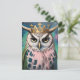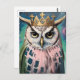 Pink and Blue Owl in a Crown Postcard