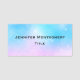 Name tag with a whimsical background. A pastel pink and blue gradient colour scheme. Little white stars scattered around. Whimsical and magical design.