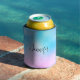 Can cooler with a whimsical background. A pastel pink and blue gradient colour scheme. Little white stars scattered around. Whimsical and magical design.