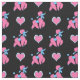 Pink and Blue Poodles and Hearts Pattern Fabric