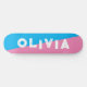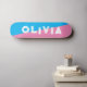 simple pink and blue skateboard for him, for her or for them is your personalized name in a bold funky and grunge distressed lettering. Get the prefect abstract design for a teen birthday or Christmas present. Just write your own name for a custom skateboard.