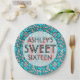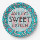 These paisley blue and pink sweet sixteen party plates read "Ashley's Sweet 16". Personalize them with the birthday girl's name and party information. For more sweet sixteen party accessories visit the rest of this shop!