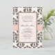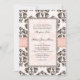 Customize this elegant and pretty pink and brown lightly distressed vintage antique damask wedding invitation with a pink and white damask background and pink ribbon contrast stitch design. Design © Chrissy H. Studios, LLC. All Rights Reserved.
