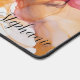 Transform your office into an artistic sanctuary with this stunning alcohol ink abstract desk mat. The design features a fluid, ethereal landscape of soft blush pink, vibrant magenta, and warm amber tones, beautifully accented by deep charcoal wisps and delicate golden veins. A personalized name is elegantly featured in a sophisticated black script font in the lower corner, adding a professional and high-quality touch to your workspace. This durable, large-format mat provides a smooth surface for your mouse and keyboard while offering superior desk protection. Perfect for designers, students, or anyone looking to add a refined, artistic flair to their daily routine, this personalized accessory makes a beautiful and practical statement piece.