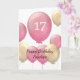 Personalized pink and gold 17th birthday card for her, which features pink and gold balloons on the front of this seventeenth birthday card.