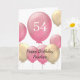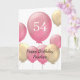 Personalized pink and gold 54th birthday card for her, which features pink and gold balloons on the front and a place for her name. A unique birthday card keepsake for her. Go to "Personalize this template" to edit her name and birthday message inside.