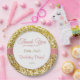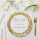 These pink and gold birthday party plates have a gold sparkly background and a pink ribbon in the middle. They say "Thank you for coming to (name's) Birthday Party!" There's even room at the bottom for your party date or special message.