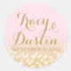 Sparkle and glitz bohek light effect design in blush pink and golden tones. Personalize with bride and groom's names and wedding date or other text as preferred.