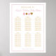 Perfect for a smaller event, this custom, casino themed, baby shower seating chart has space for twelve names at six tables and gives your guests an easy way to find their place at a table. All of the text can be personalized including the table number, guest names, headline and subheading with your event details. Chart is set up for six tables with twelve people at each, clear the template text in last box or two if you have fewer tables or use the customize design options to rearrange text boxes to your liking and needs.