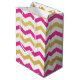Cute and fun Pink and Gold Chevron Pattern Gift Bag. Perfect for any birthday or baby shower. Customize with a photo.