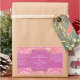 A product label featuring a pink damask pattern in the background. Has space for your logo and website.