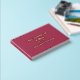 A beautiful gold foil wedding guestbook in deep rose pink colour with a floral embilishment